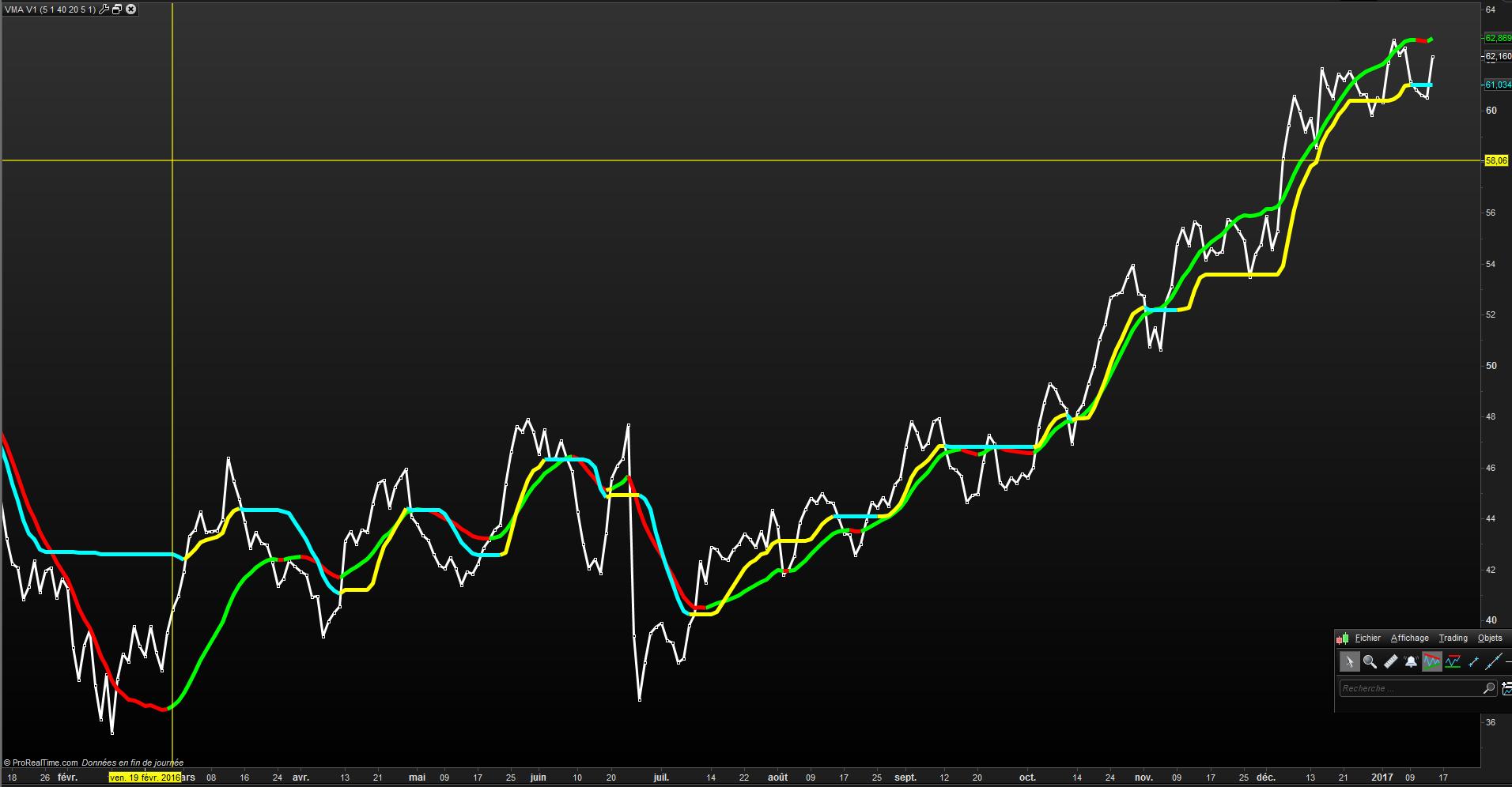 J’aimerai appliquer le principe de la HOLT EMA sur la VMA. c’est à dire colorer l’indicateur VMA en 3 couleurs : vert, blanc, rouge selon la tendance.