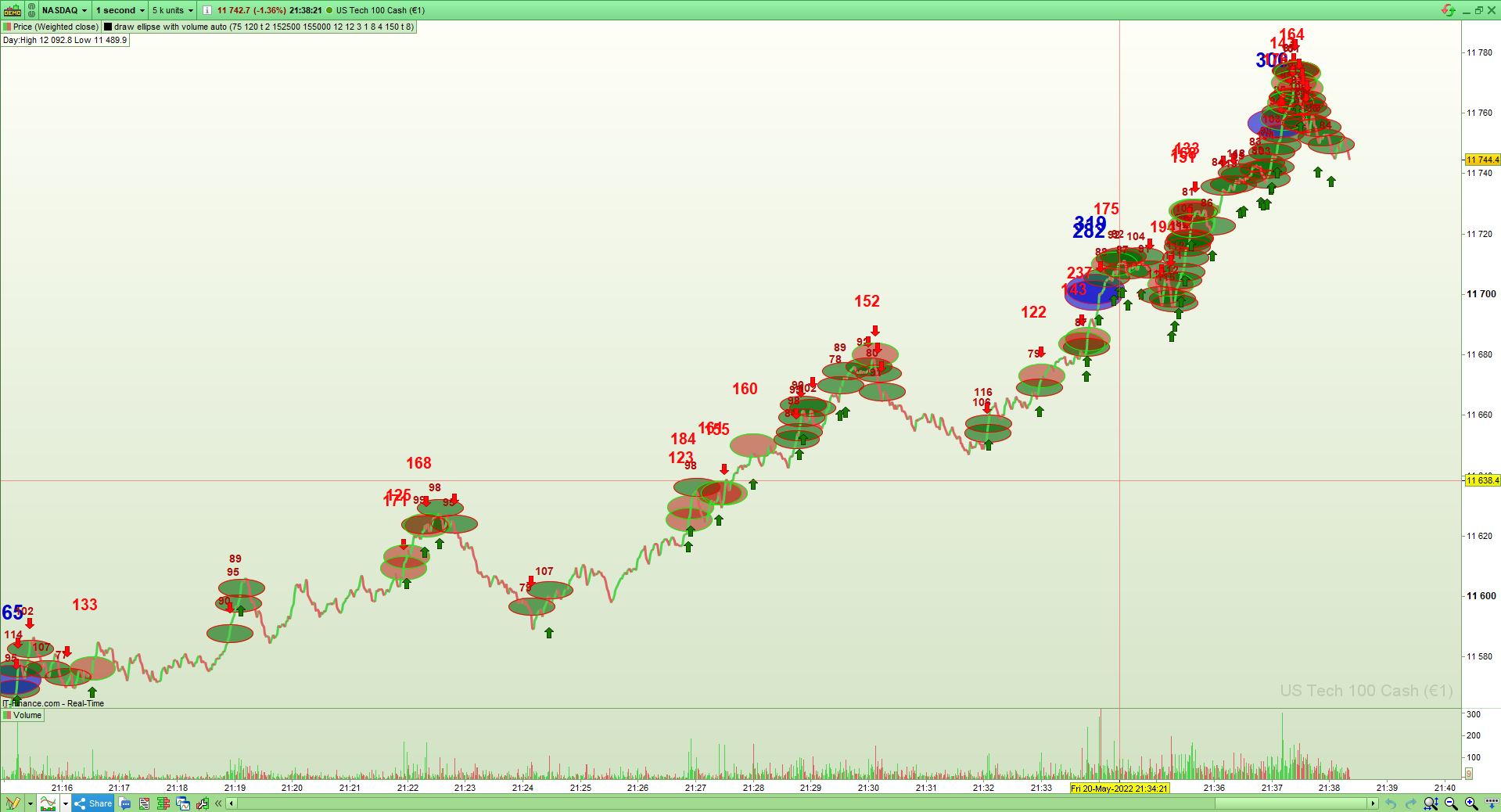 hi again, here I post a screenshots of today 20-may-2022), just before the close of the cash market ET 04:00 pm. it was today a down trending market (actually for the last couple of days) in the screenshots you can see the end of the day run up, a lot of stops are taken and shorts are covered, fueling each other to the upside.