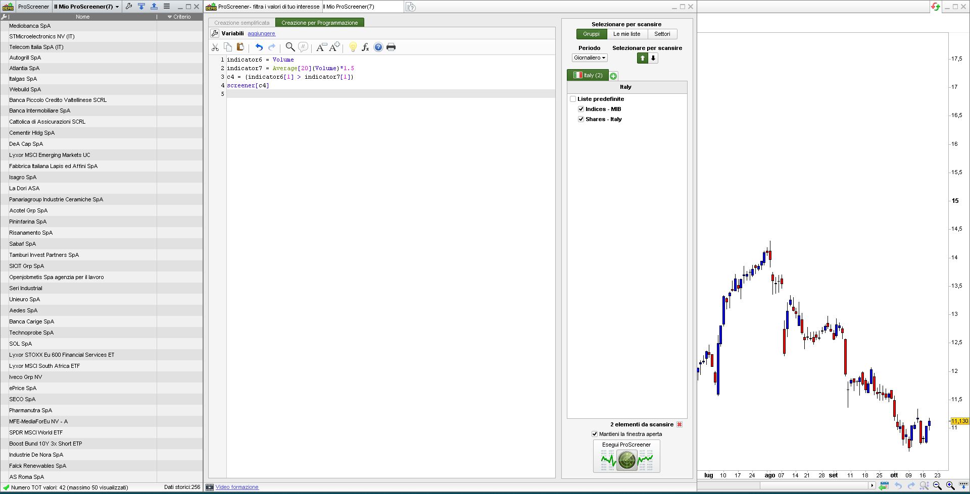 SCREENER[c1 AND c2 AND c3 AND c4 AND c5] (Variation AS “% Var barra prec”)