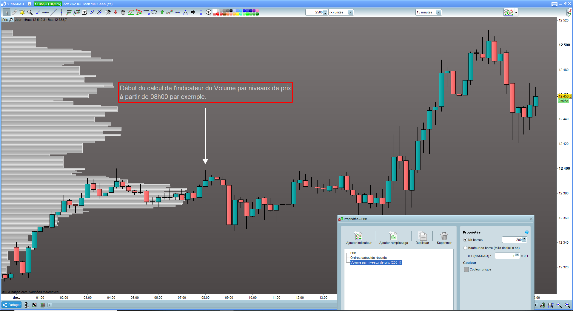 Comment serait-il possible d’avoir le “Volume par niveaux de prix” à partir d’une certaine heure par exemple, plutôt que sur les X dernières bougies ?