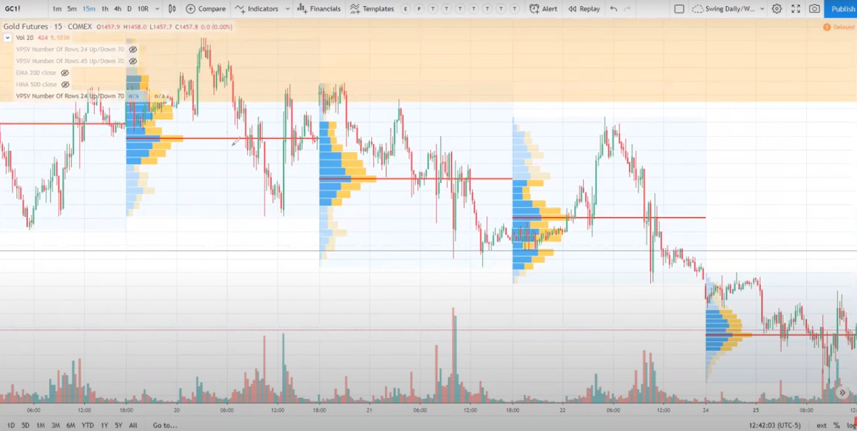 Good afternoon, I’ve seen the Volume Profile on PRT 11, which displays the volumes per price for the bars shown on the chart. I’d like to know if there is a “Volume Profile” on PRT which displays multiple days split in lower TF, 15 minutes for example, like the attached chart from Trading View?