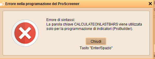 DEFPARAM CalculateOnLastBars = 1000 //per velocizzare l'aggiornamento dei grafici