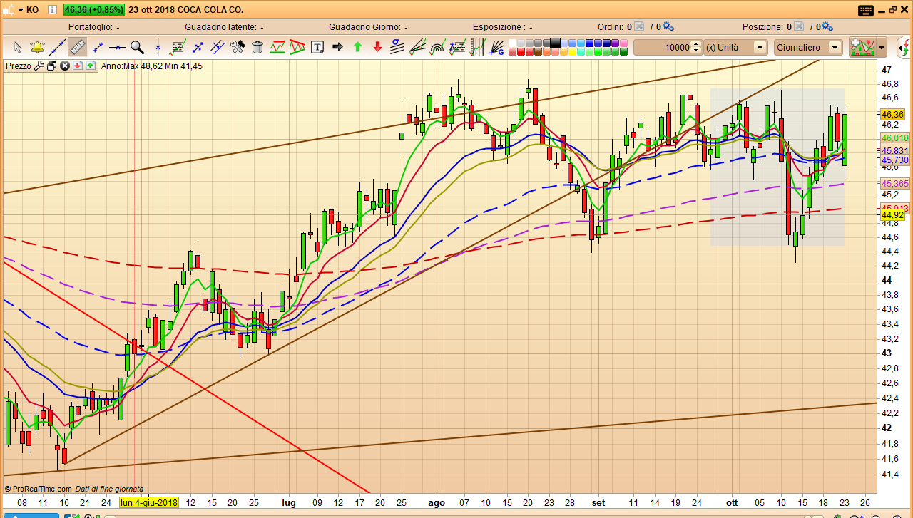 Il colore che ho indicato (tutti zeri) serve per NON visualizzare il bordo del rettangolo, mentre il colore interno del rettangolo NON può essere cambiato. I primi 3 parametri del colore sono: R(Red o Rosso),G(Green o Verde),B(Blue o Blù). Il quarto parametro viene chiamato F(Fade o Intensità) ed è facoltativo, se non c’è viene assunto il valore massimo 255, altrimenti si può indicare un valore inferiore per diminuirne l’intensità, io ho messo 0 per renderlo invisibile (quindi, nel mio caso potrei avere indicato qualunque degli altri 3 colori, non sarebbero comunque visibili), vedi tabella dei colori: https://www.prorealcode.com/wp-content/uploads/2015/09/P1jHlnG.jpg.
