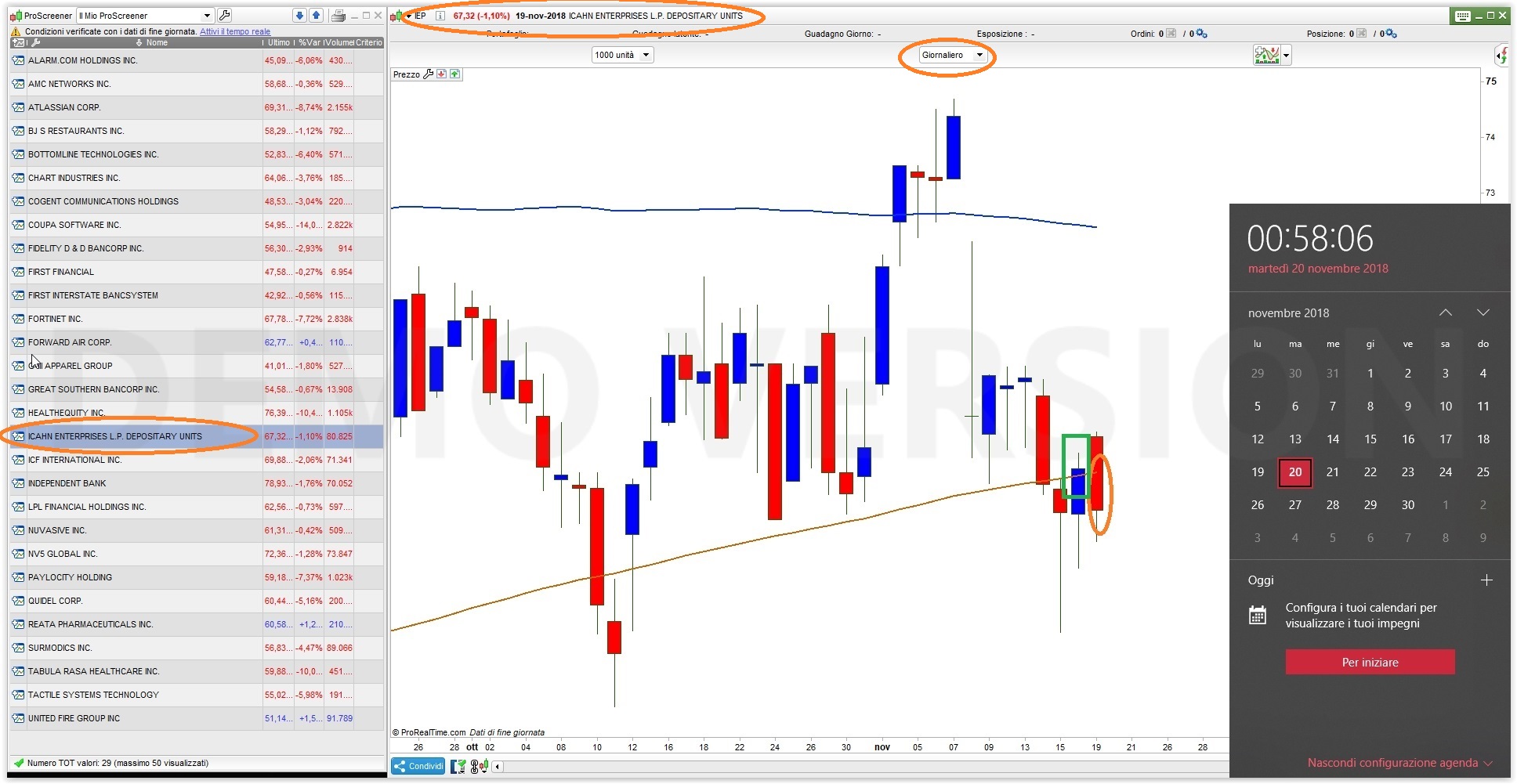 Non è possibile evidenziare sul grafico con lo ProScreener, perché il compito degli screener è solo quello di monitorare il mercato LIVE ed evidenziare gli strumenti che corrispondono alle tue condizioni, non supporta istruzioni grafiche perché sarebbero inutili in quanto NON lavora sui grafici.