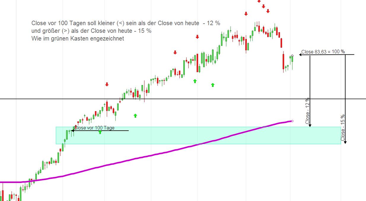 und Schlusskurs von vor 100 Tage größer als 85 € (15 %)