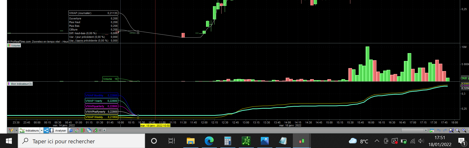 Les differentes vwap apparaissent dans une fenêtre distincte ( voir piece jointe ) . J’aimerai qu’elles soient représentées sur le graphique directement si c est possible. Ca me permettre de rester concentrer sur le graphique prix avec les vwap inclues.