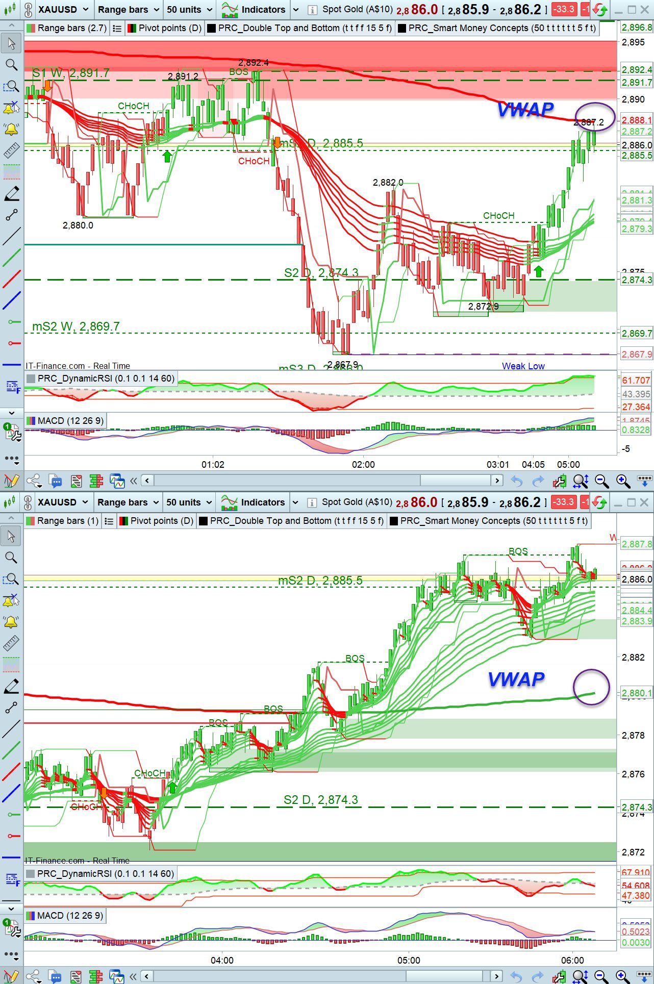 Same char but 1.0 point per bar, and 2.7 point per bar. Same VWAP daily, but reading in one chart 2880.1 but on the other chart is reading 2888.1 ?????!!!!!