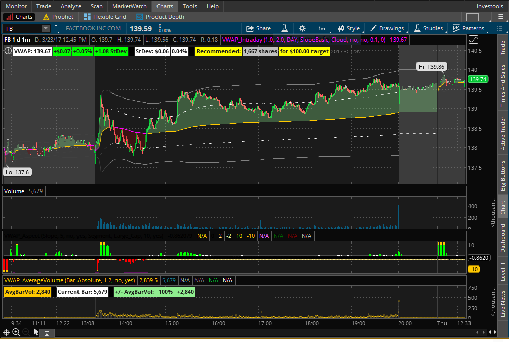 As requested please find attached the TOS code for VWAP – as stated before i believe the Proreal time code does not include the first minute of Volume data which causes a variance in the VWAP and bands caluclation.