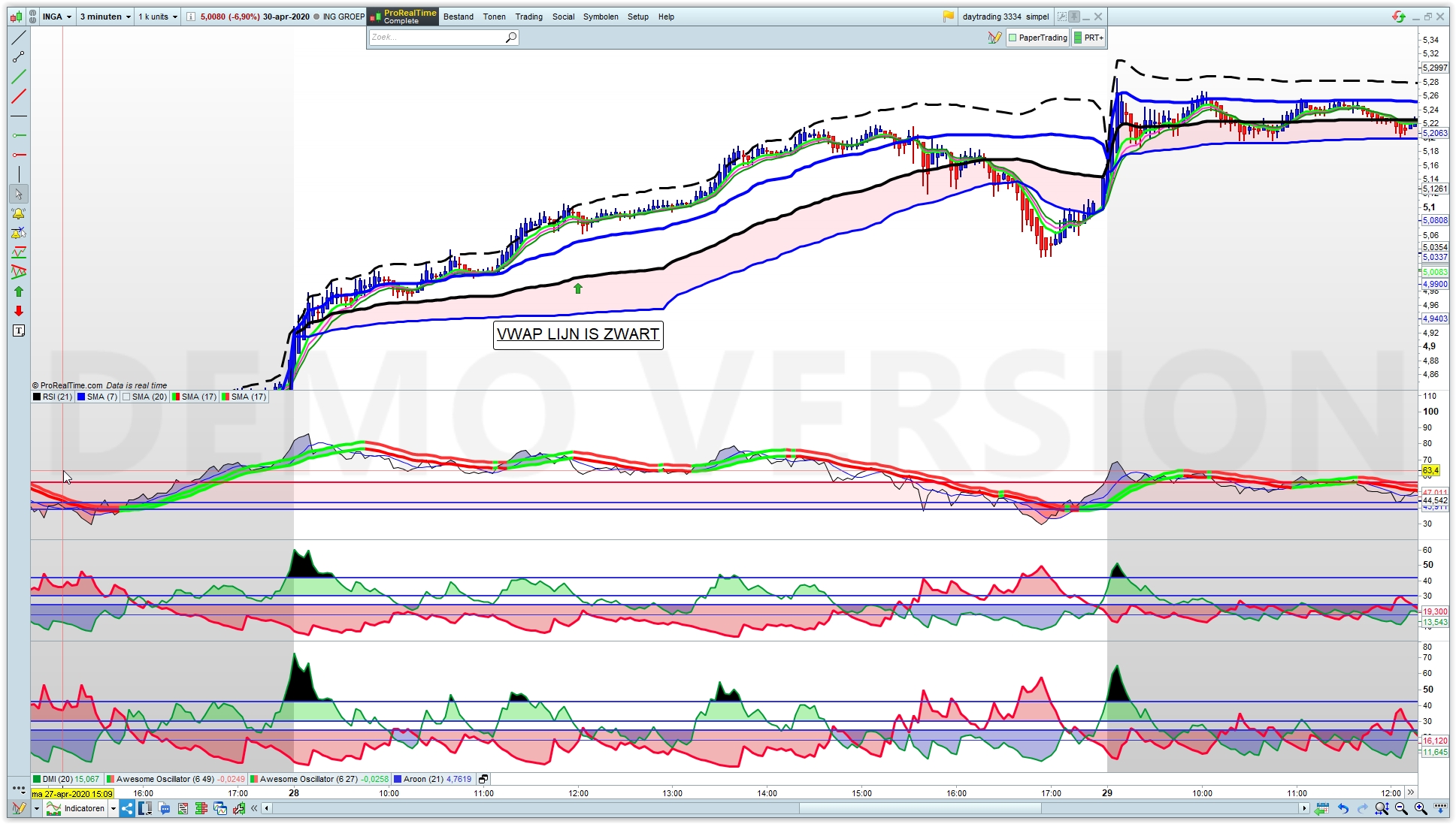 INSTELLING VAN DE VWAPBANDS IS OP DAGBASIS
