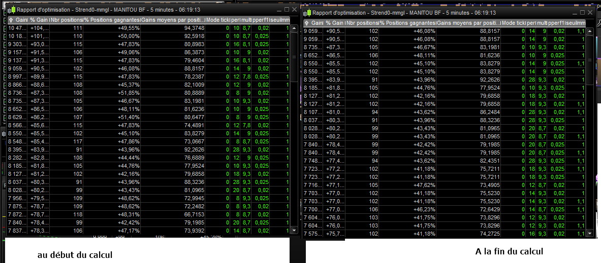Après “affinage”, dans le 2eme cas, les “bonnes” combinaisons qui disparaissent semblent être toutes les combinaisons avec un nombre de trade élevés car lorsqu’on tri sur cette colonne on voit que le max se réduit régulièrement au fur et a mesure du calcul des combinaisons…. Si ca peut aider.