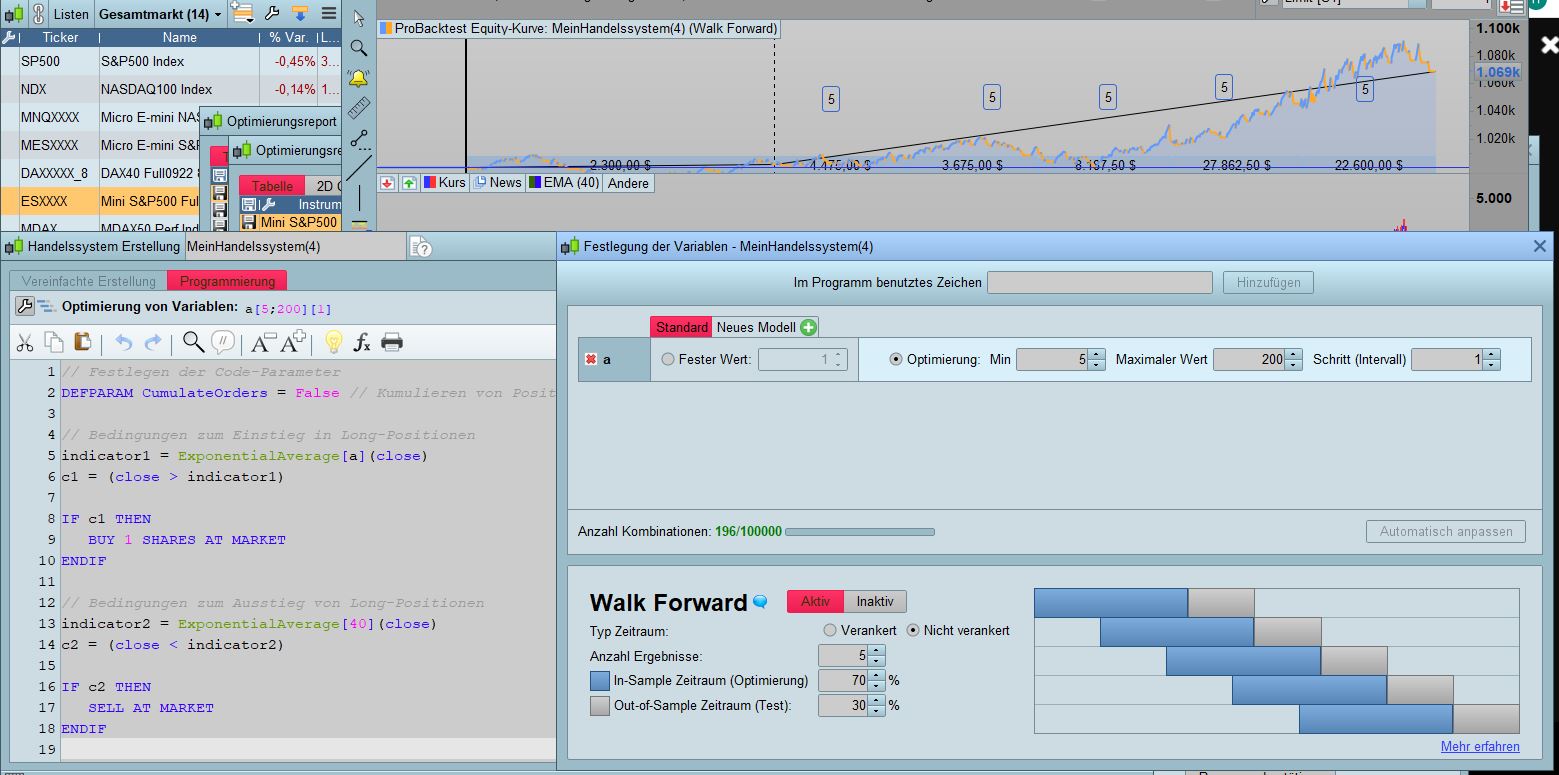 Über wie viele Takte läuft der Walk Forward also und in welchem Zeitrahmen?