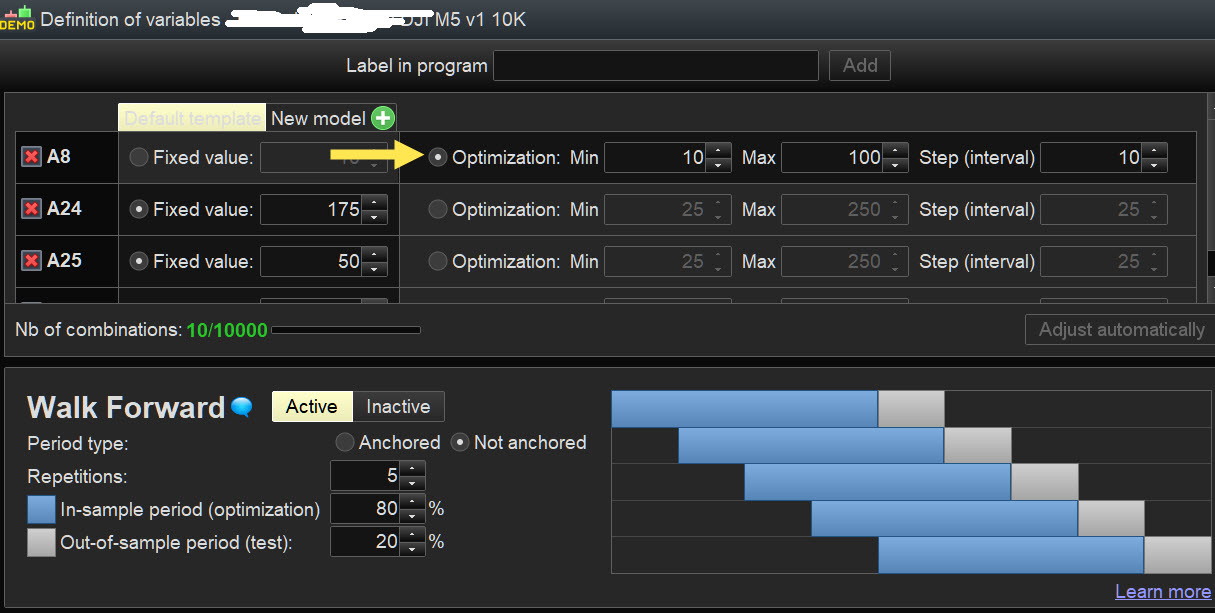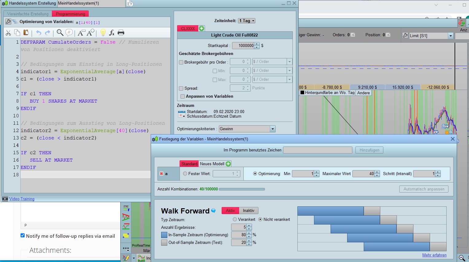 Kann da jemand helfen? Ohne walk forward geht es jedoch mit walk forward immer nur 1 als Ergebnis