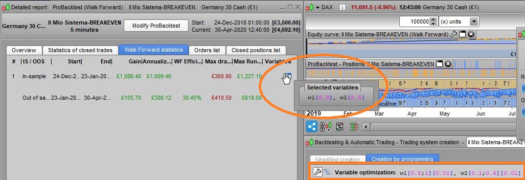 Le variabile nel codice sono al loro posto, poi nell’ottimizzazione alcune le ho messe come valore impostato cercando le altre, ma non mi visualizza i valori nel walkforward.