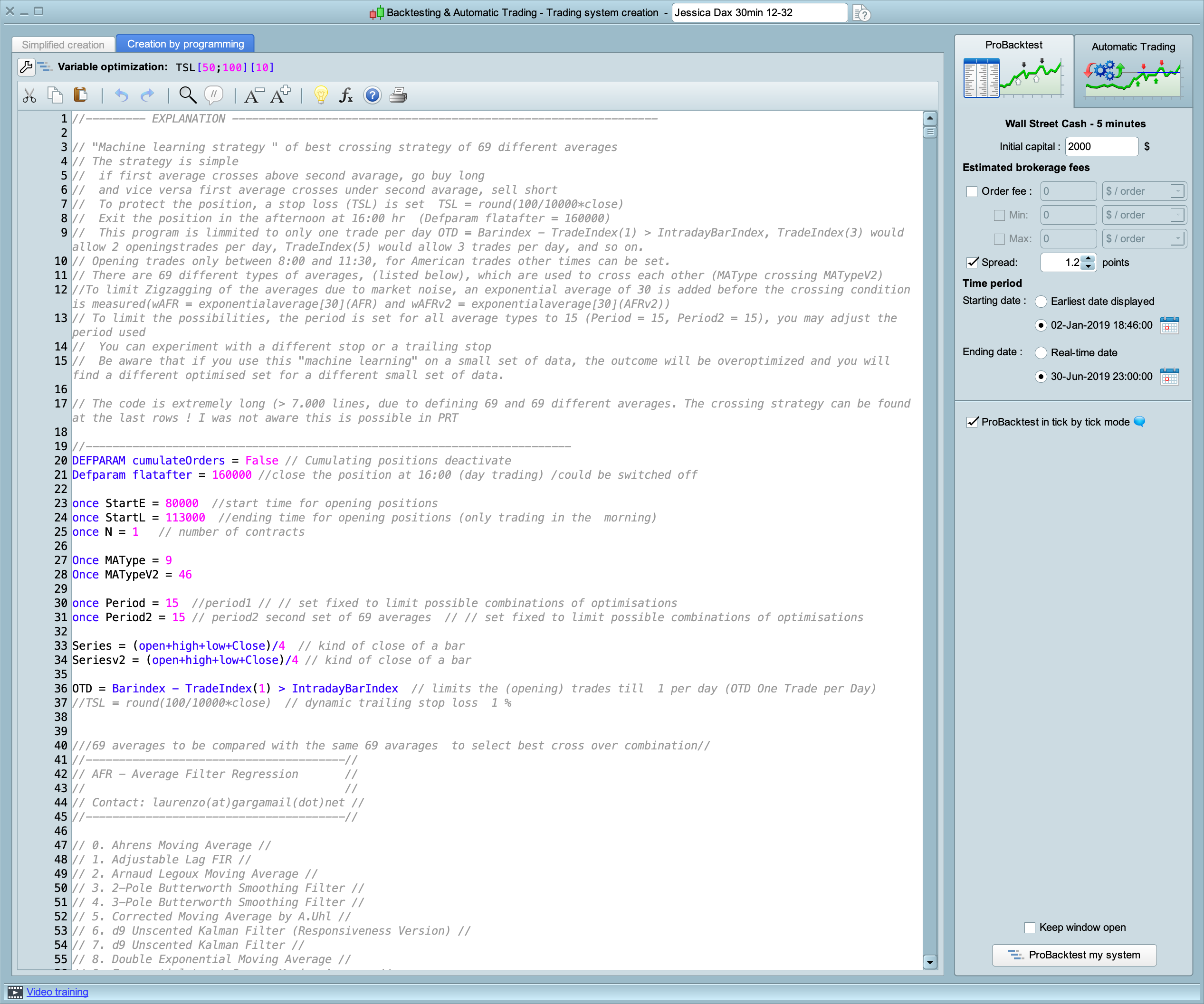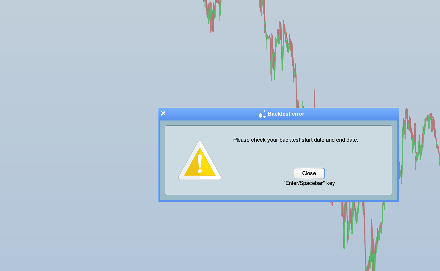 A second query is whether it is possible to backtest for a period last year, ie. to backtest the period Jan 1 2019 – March 1 2019, a period which doesn’t go from the current date backwards.