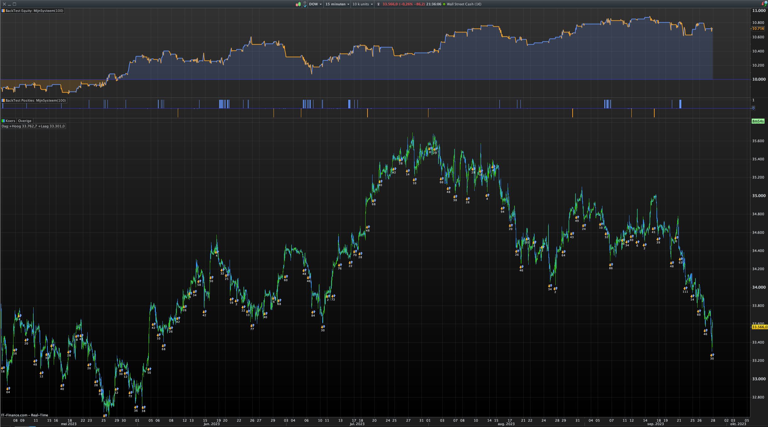 Below as an example the trading system including the indicator…