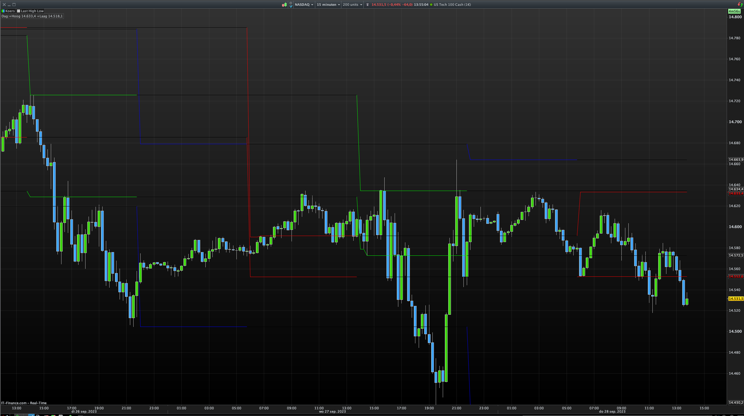 Here is the indicator with the “High and Low” starting at the three times…