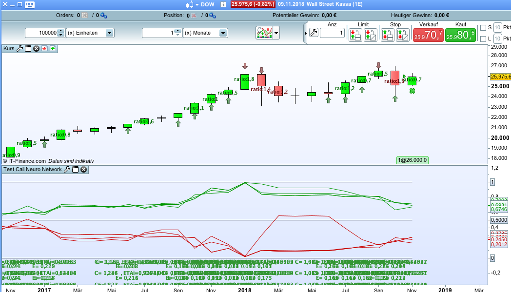Here is the first test of my indicator with a 20 year look back period on the DAX:
