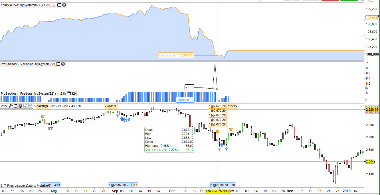 A closer look with WEEKLY,DEFAULT. It closes a trade on a Thursday and the spike is shown on the Wednesday. I can understand the trade closing mid week as the weekly conditions will change daily but the +1 then -1 on ex value just makes no sense.