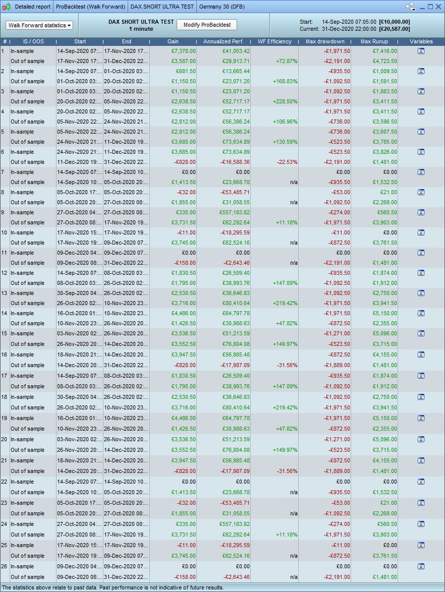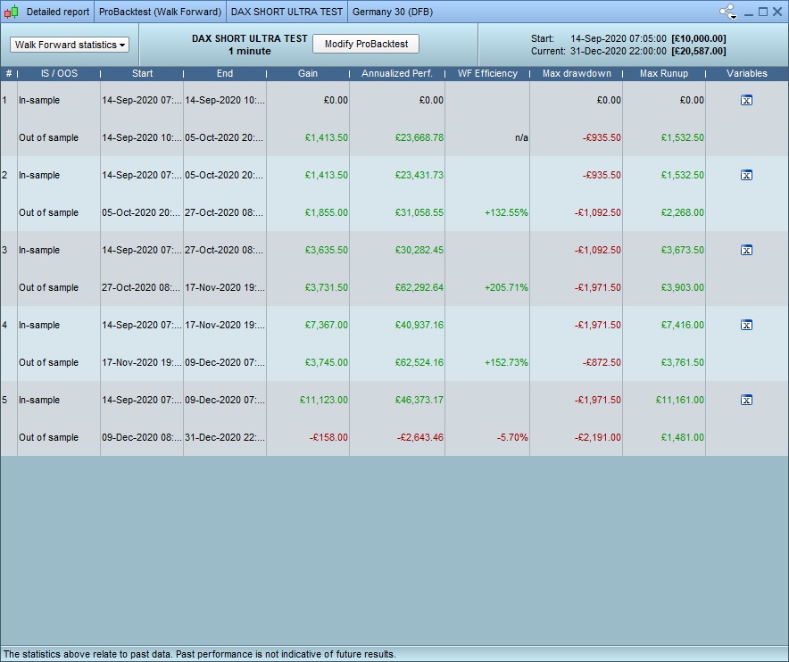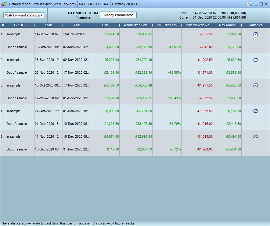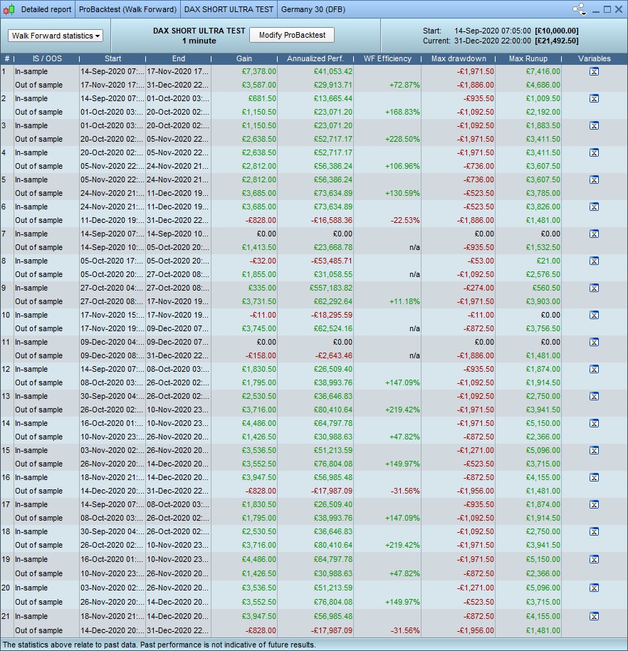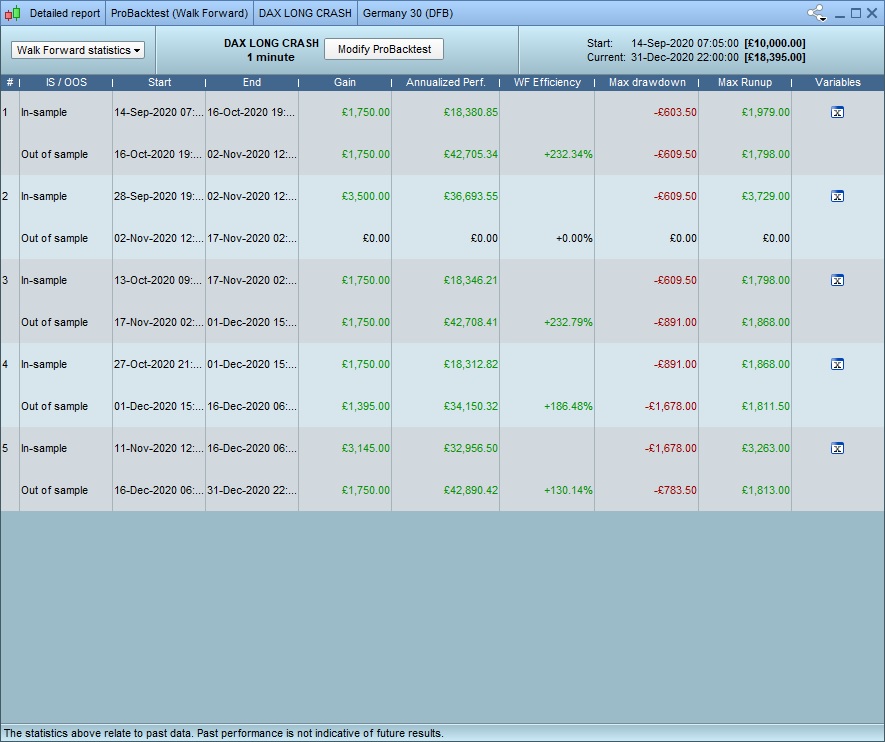 2. im not 100% sure what you mean, but …. yes. I have backtested and manually optimised the algos to give the best results – but I have been careful not to just choose the “best value” for everything, but rather those that appear to be in the range that works well. if that makes sense? clearly creating an algo from scratch with no optimisation at all, running a walkthru and getting these results would be……. unlikely 🙂