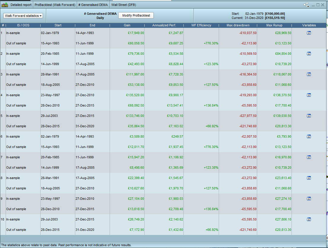 2. Did you (previously) optimise over the full / same period that you now are showing results for Walk Forward?