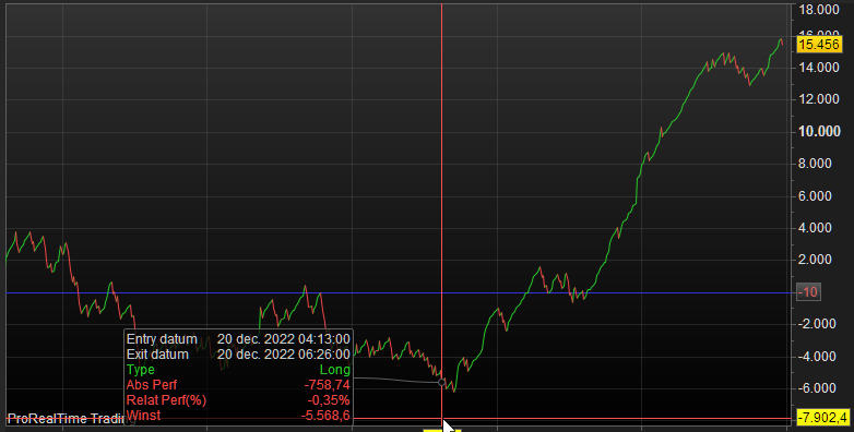 So as you can see, I now chose for 3 times less the revenue only because psychologically I can’t stand to see the Entry going in the wrong direction of what I would do manually, knowing that it would bring more net anyway. And careful, the sheer reason of the less revenue lays in the fewer trades. This is logic for the better entries – which thus will be fewer – but I will gain back on that by another technical means (Money Management) that anticipates less losses. I could not work on that yesterday, but I will finish that today and I will put this live instead of the old System. When it is finished, I may add the 1M backtest result and will show you that I did not bother about that this time (head in the sand). I anticipate it will be terrible.