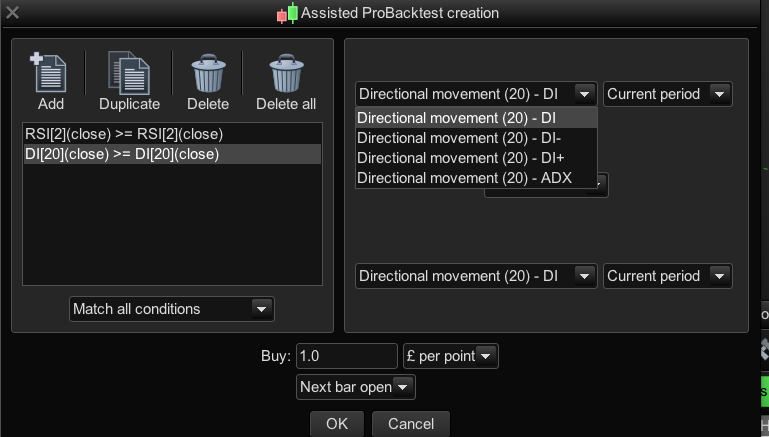 I have definite bugs on this platform Grahal, the assisted creation drop downs (for already existing strategies) are now greyed out, I have no functionality. I have no choice in the drop downs only the parameters of the indicator. I can’t even program a simple if Price > Mov Ave 100 anymore. #Disaster… I’ll email IG again…