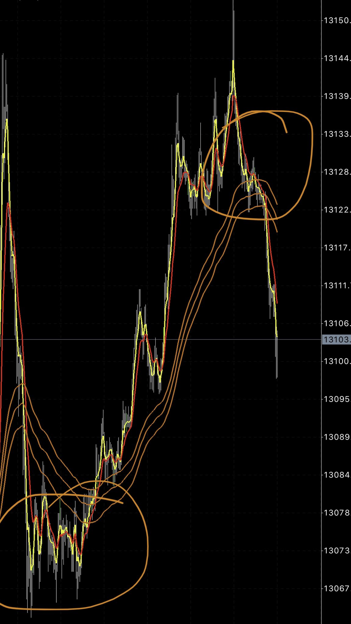 The example bellow is DAX 1 minut chart from yesterday 2020-10-12 between 11- 15:30