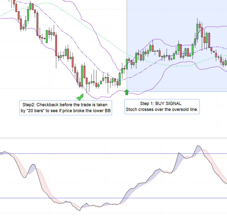 Check back the Bollinger bands over 20 periods to see if the Price broke below the down band.