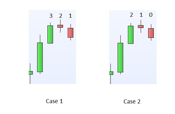 shall I write … If Close[0] < Low[1], i.e Case 2, or If Close[1] < Low[2] … i.e. Case 1 ?