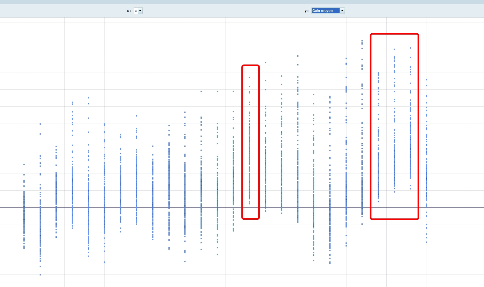 For example I think it could be interesting to look for parameters with Gain average >0 for example the A variable I indicate on my graphic, or may be should we see parameters with lower maximum drawdown ?