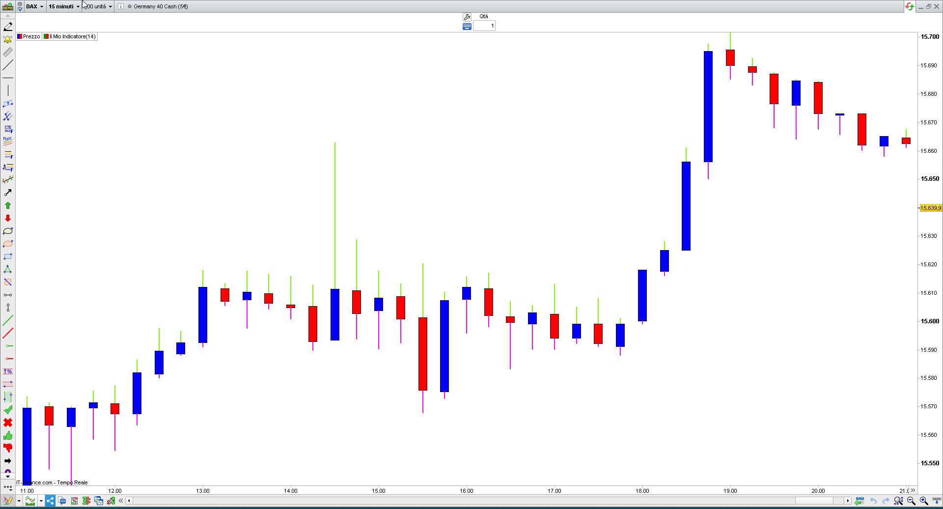 Anyway, if you use DRAWCANDLE you can change the colour of the whole candle. To only change the colour of wicks you need to draw a segment form HIGH to max(open,close), and a segment from min(open,close) to LOW, eventually using different colours: