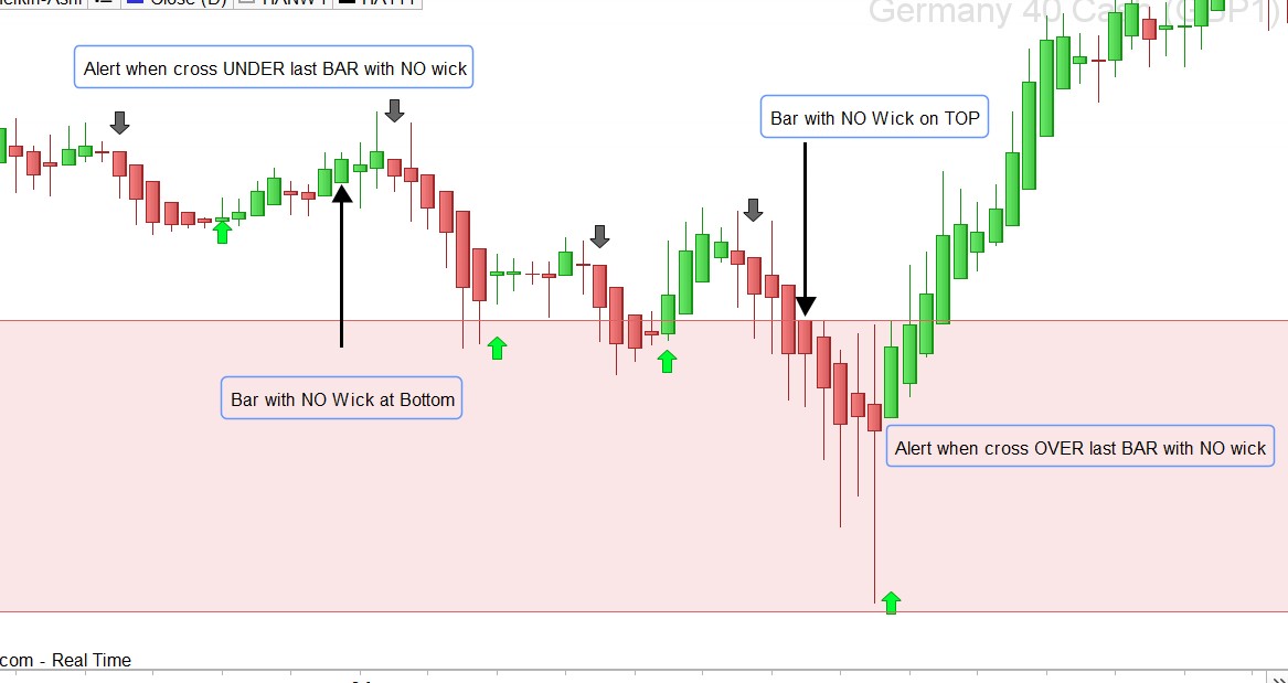 Here a version that you can put under your chart with “barchart” for green and red parameters OR on your graphs with arrows for No-Wicks candles.