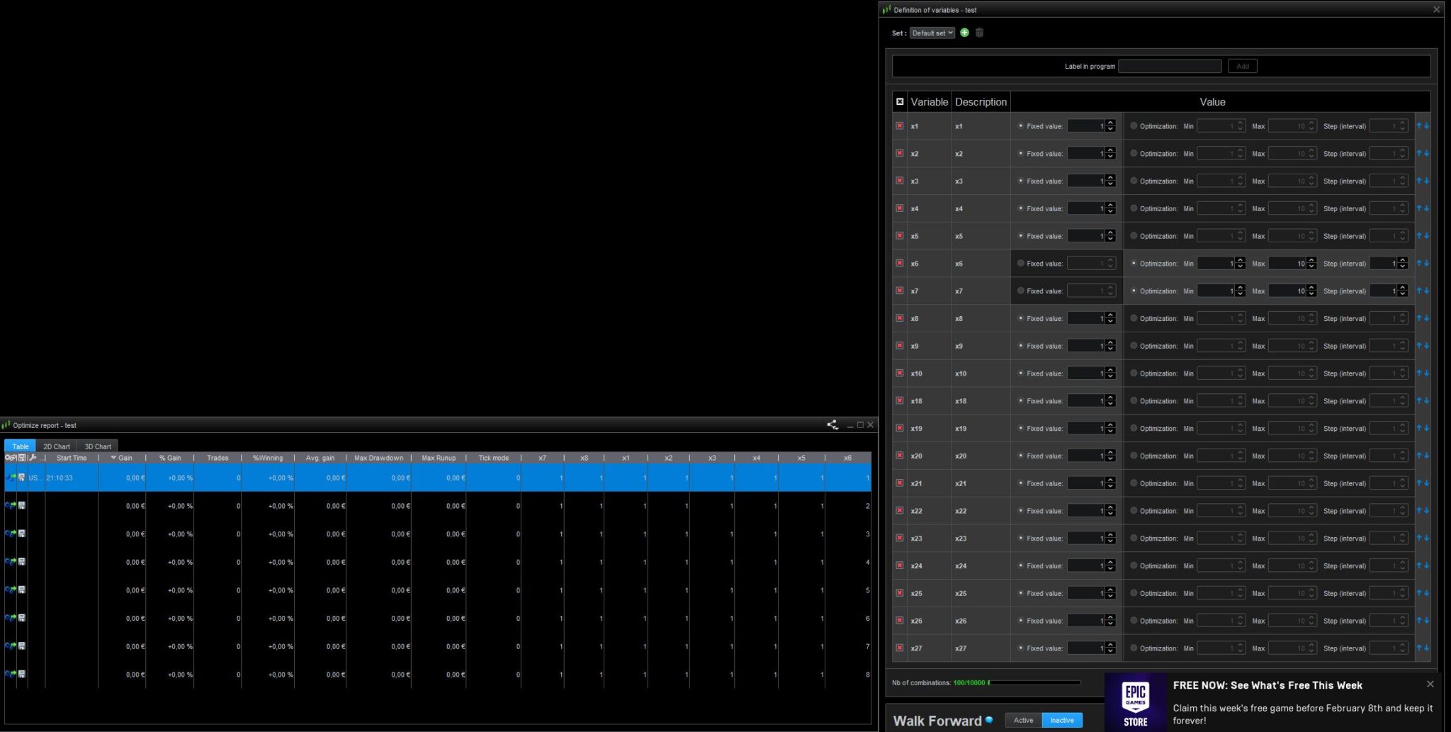 I have expierienced a wierd bug or maybe I have mis-clicked something. Dosent matter how many optimizing variables I have the optimize report only show a couple of them and not even the ones I´m trying to optimize. I have restarted PRT on two different computers och two different days. I have made a new code from scratch but it does the same thing every time. Does anyone know whats wrong?