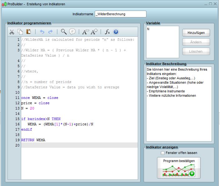 Thats the reason why i need the correct calculation of RSI from ProRealtime in my java application. Specially the calculation of the wilderaverage…the rest calculation of RSI is easy and clear.