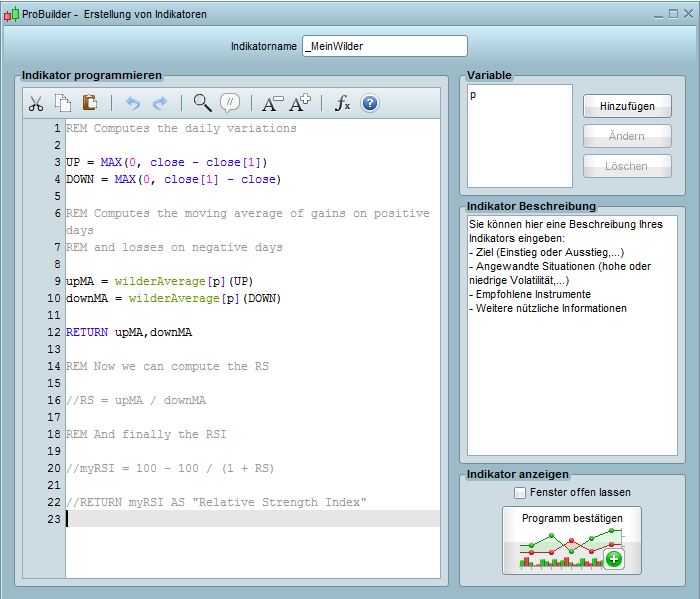 i want to rebuild the RSI Indikator of ProRealtime in Java. The ProRealtime Example is very helpful: