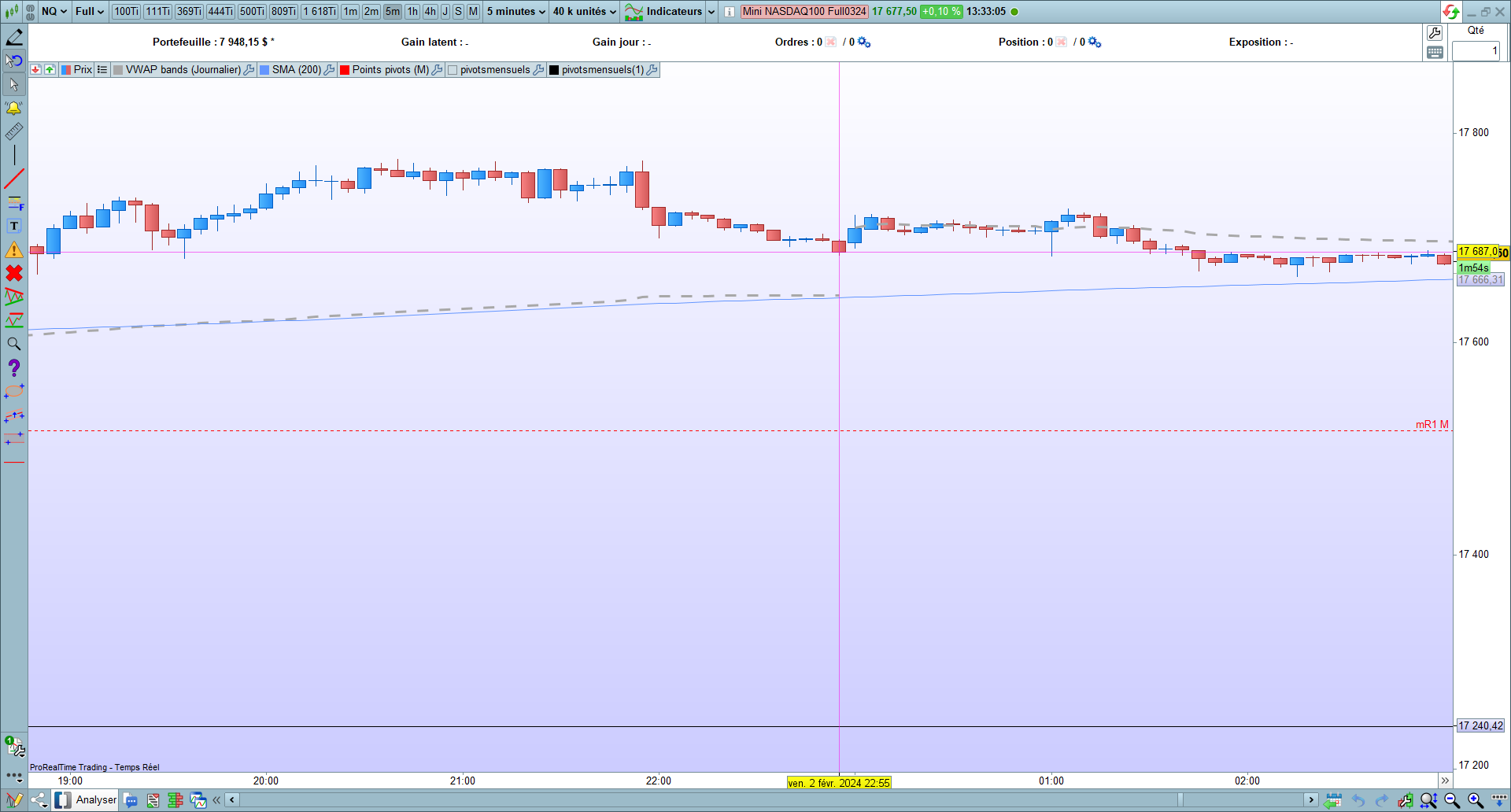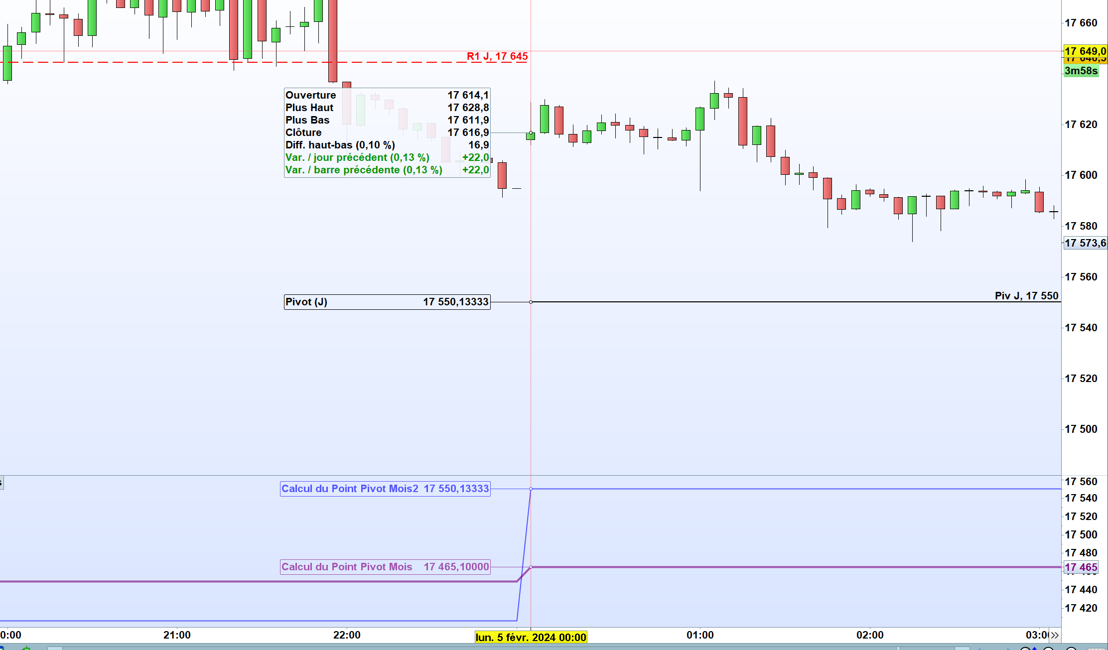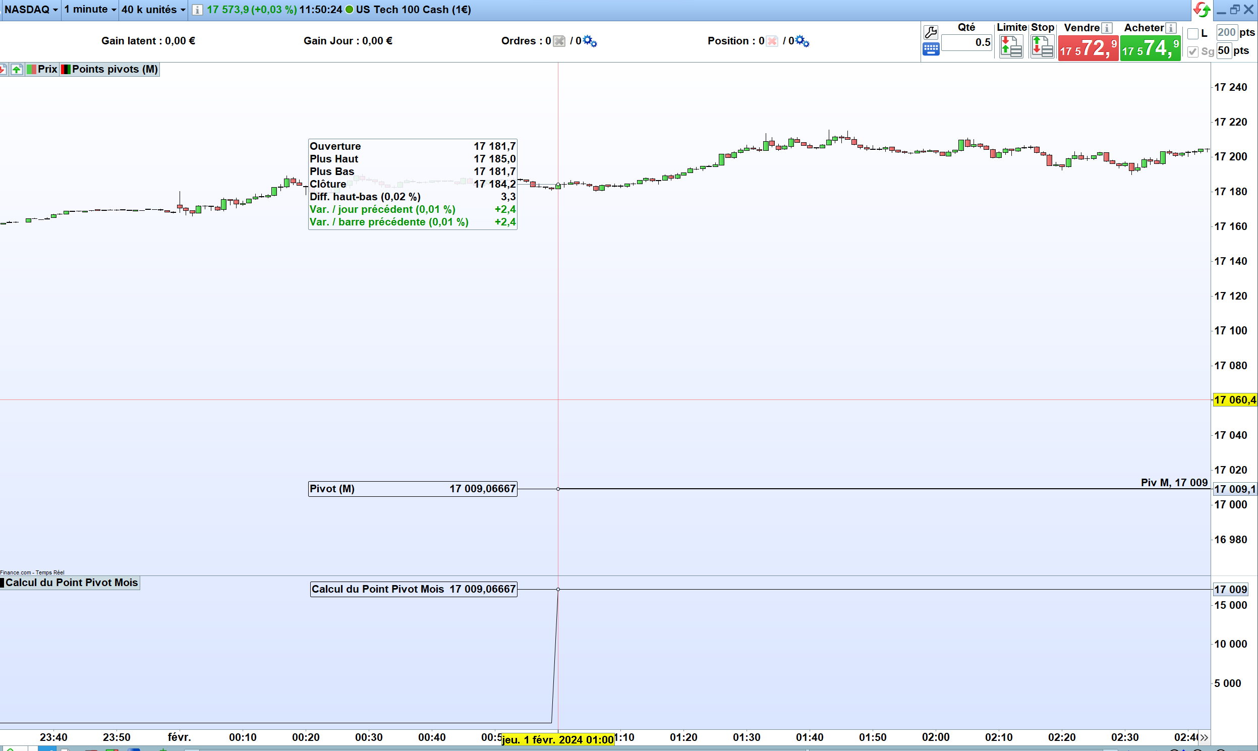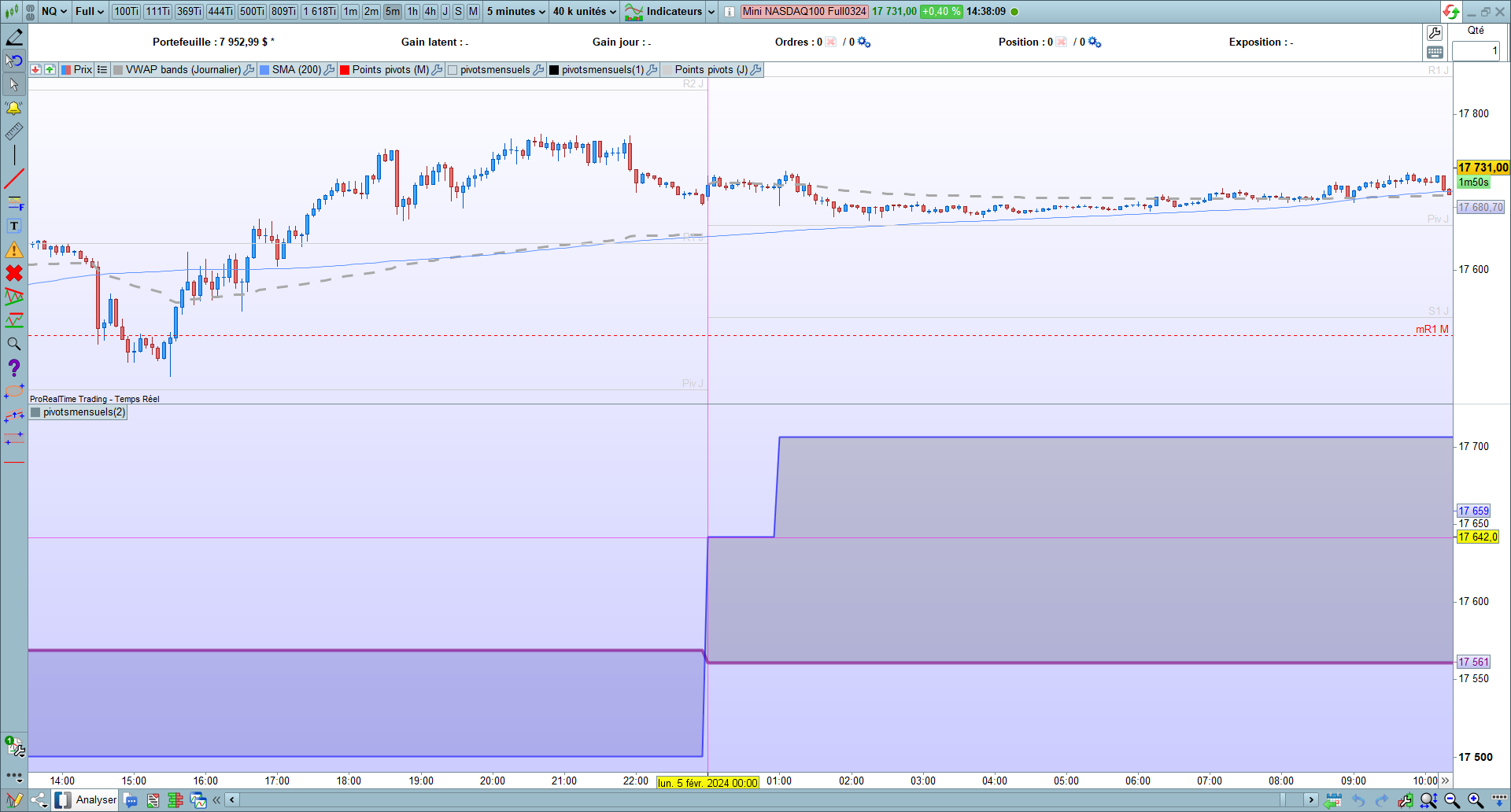 If I apply it as is on the NQXXXX 1min with 40 kUnits, MonthPivot is equal at 17240,62 whereas the PRT native Piv M is at 17123,33.