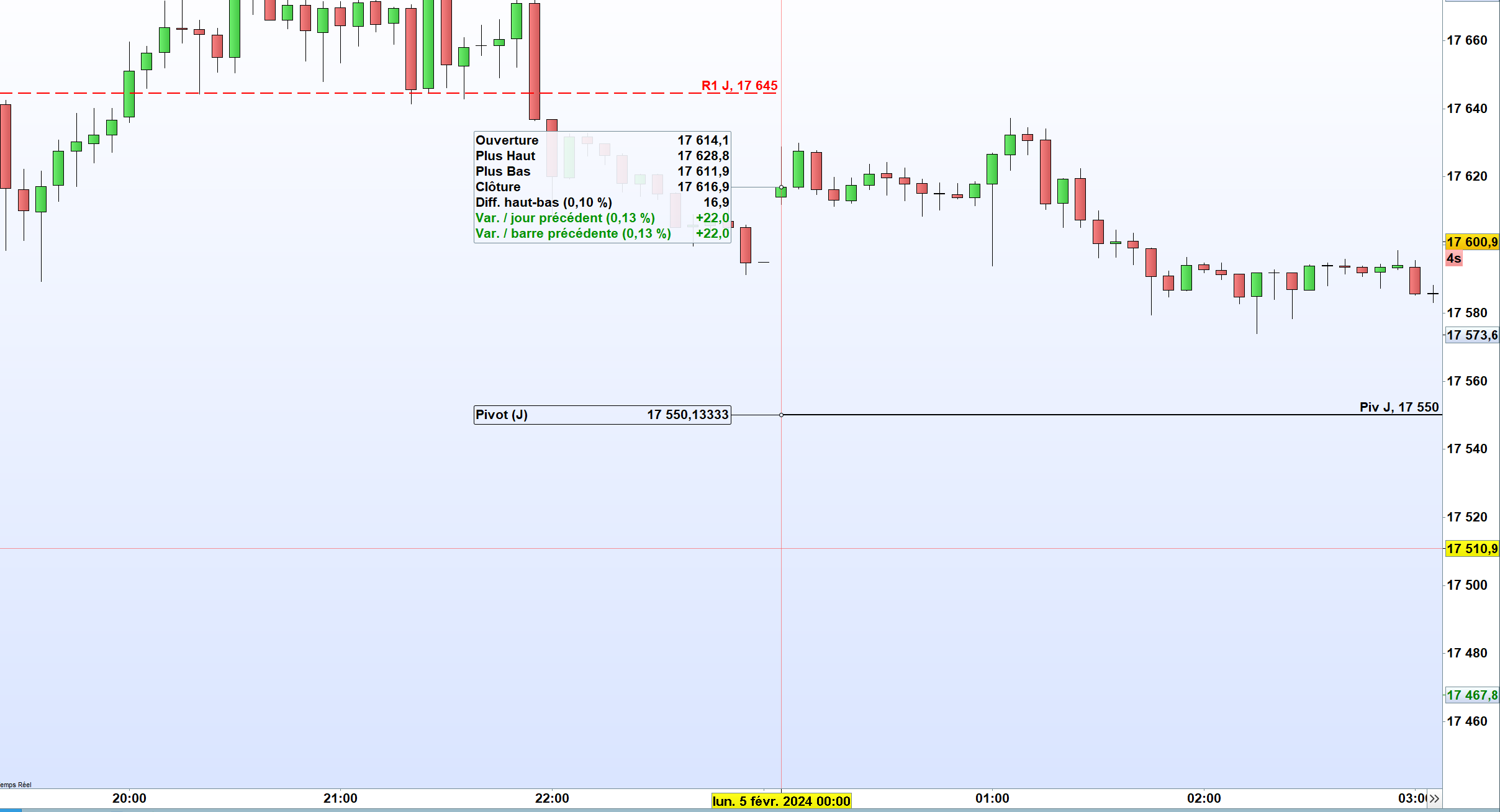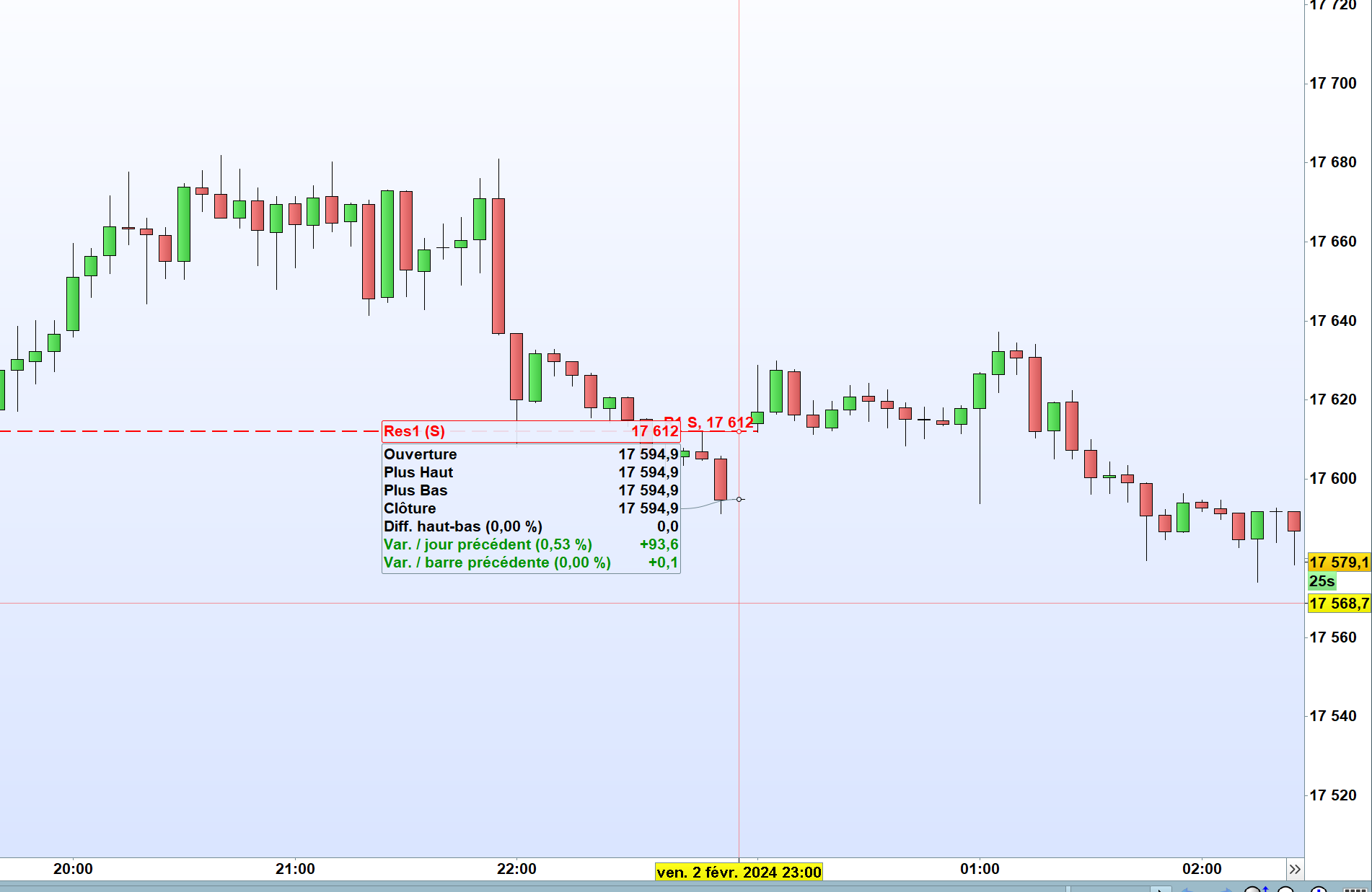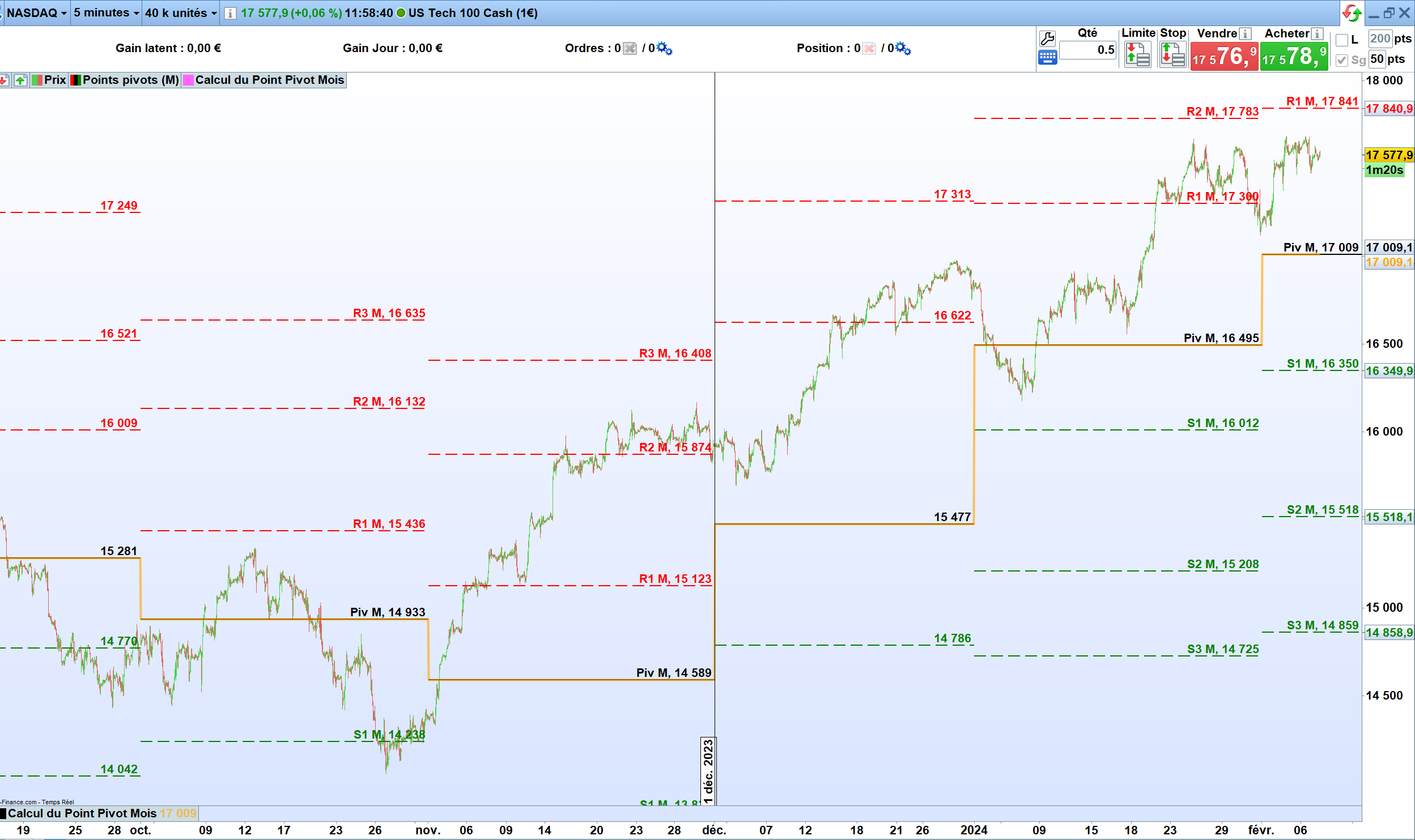 Oui, mais on va rajouter l’indicateur suivant en bas des prix et mettre le pivot daily de PRT sur les prix, pour voir le décalage (s’il y en a).