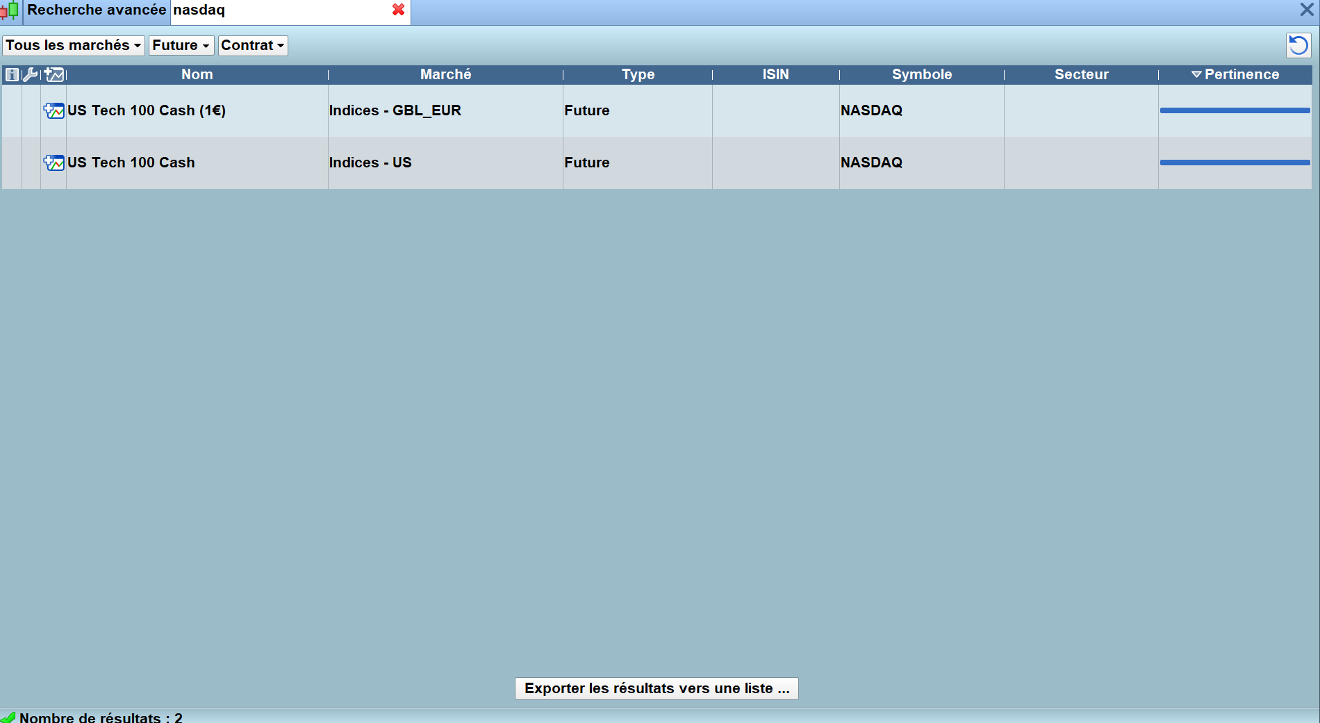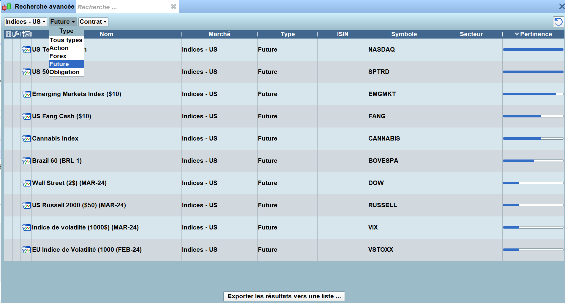 If i search for anything else than US Tech 100 for Nasdaq / US Index (future), i get only this list… (IG Markets)