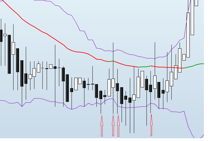 Merci Nicolas, Le cas que je présente sur mon screen est parfait. J’ai 4 bas identiques ( flèches rouges) et ils sont intercalés par d’autres bougies qui font une mèche plus basse ( cercle vert). L’idée serait que les vendeurs n’ont pas réussi à prendre le contrôle du marché car les bougies intercalaires ont transpercées furtivement le support des 4 plus bas sans pouvoir emporter les cours vers des plus bas par le corps de ces bougies. Le dernier plus bas des 4 bougies refermant le support , peut-être qu’il y a une probabilité plus grande à ce que le marché remonte. C’est une supposition, il faut que je backtest.