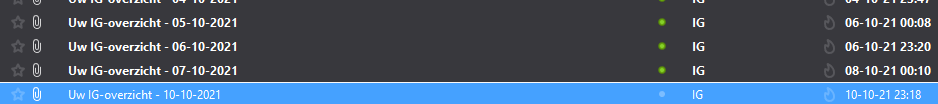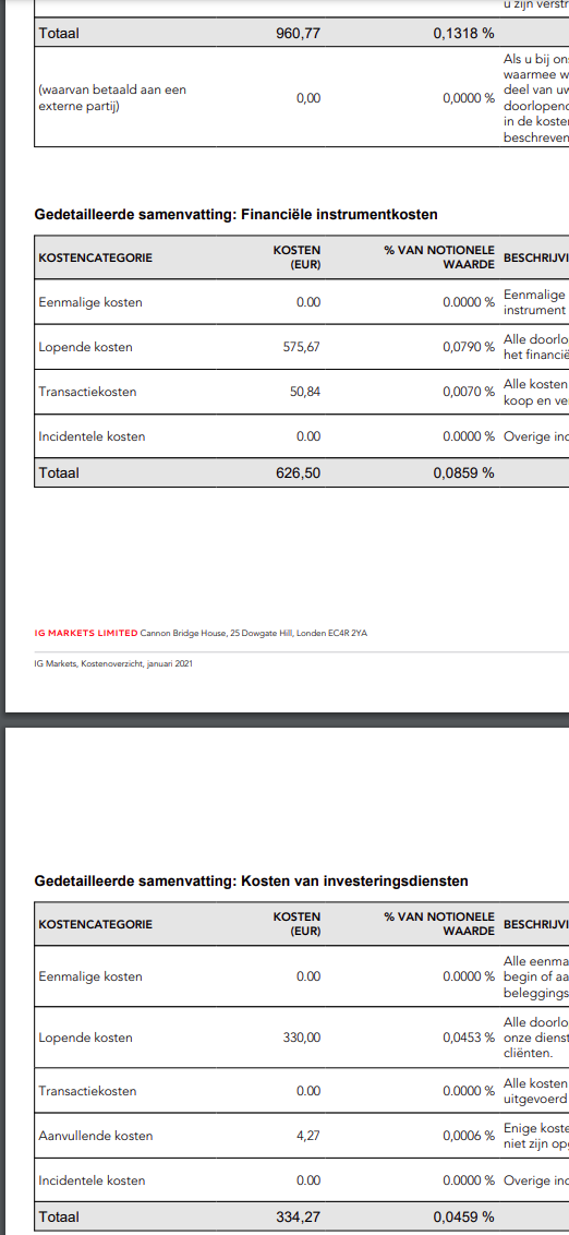 What I receive on a daily basis is a “Rekeningoverzicht”. This only tells the added or written-off $ based upon closed trades or Mark-to-Market (open) positions (I am sure everybody receives this). And this $ is incorporated/netted in the portfolio (account). With the costs as such shown on the overview (screenshot) which is similar to yours, nothing seems to happen in my (lucky ?) case. Please notice that this cost overview was explicitly asked for my me from the IG system (hence it is not from an email). See third screenshot.