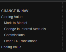 The commissions are deducted from the portfolio $. Also see the 2nd screenshot for what is added up (more items can be shown, like dividend accruals and more).