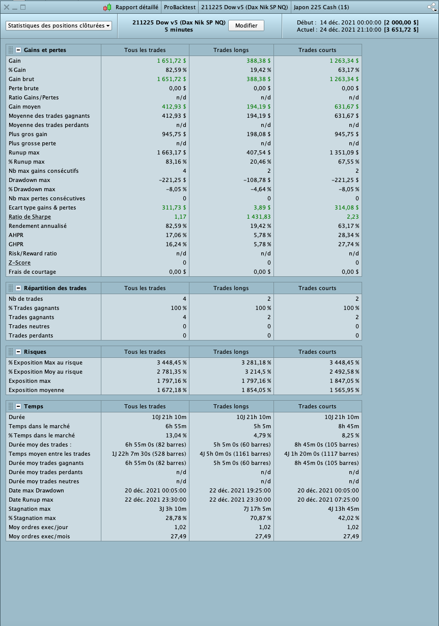 I wonder how accurate the PRT Sharpe Ratio is. I’ve a backtest showing Sharpe Ratio for Short of 2.23 and for Longs of 1,431.83. Whatever these values are, I wonder how the Sharpe Ratio of the System (all trades) can be 1.17, while the two Long/Short values are greater than 2?