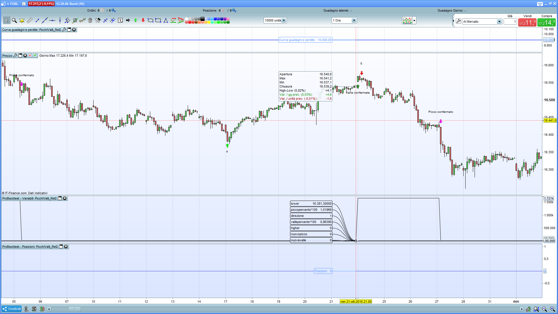 Occorre considerare che i valori suindicati sono riferiti alla valorizzazione delle relative variabili effettuata dopo la chiusura della candela in esame (quella delle 21:00 del giorno 23/10/2016).
