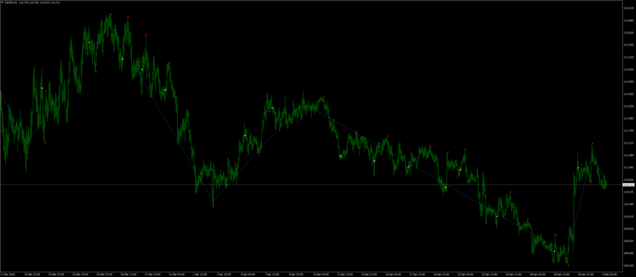 J’utilise l’indicateur zigzag buy and sell sur MT4.