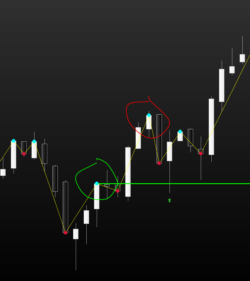 Image 2 = Mise en évidence d’un “Lastbottom” invalidé, car comme spécifié sur l’image la Close du chandelier se fait au-dessus du ‘Lastbottom[2]” (niveau Ref)