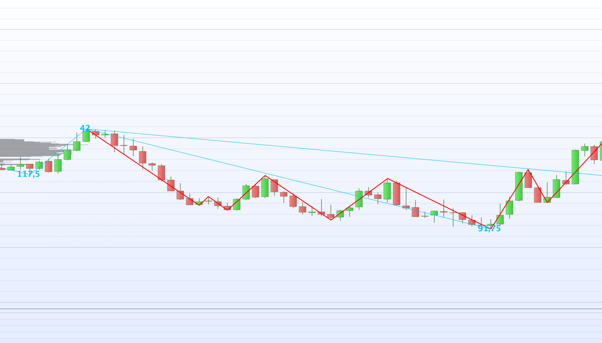 Because of the repainting nature of zigzag, the last segments could retrace itself repeatedly over time, so you’ll have to reload the chart once in a while.