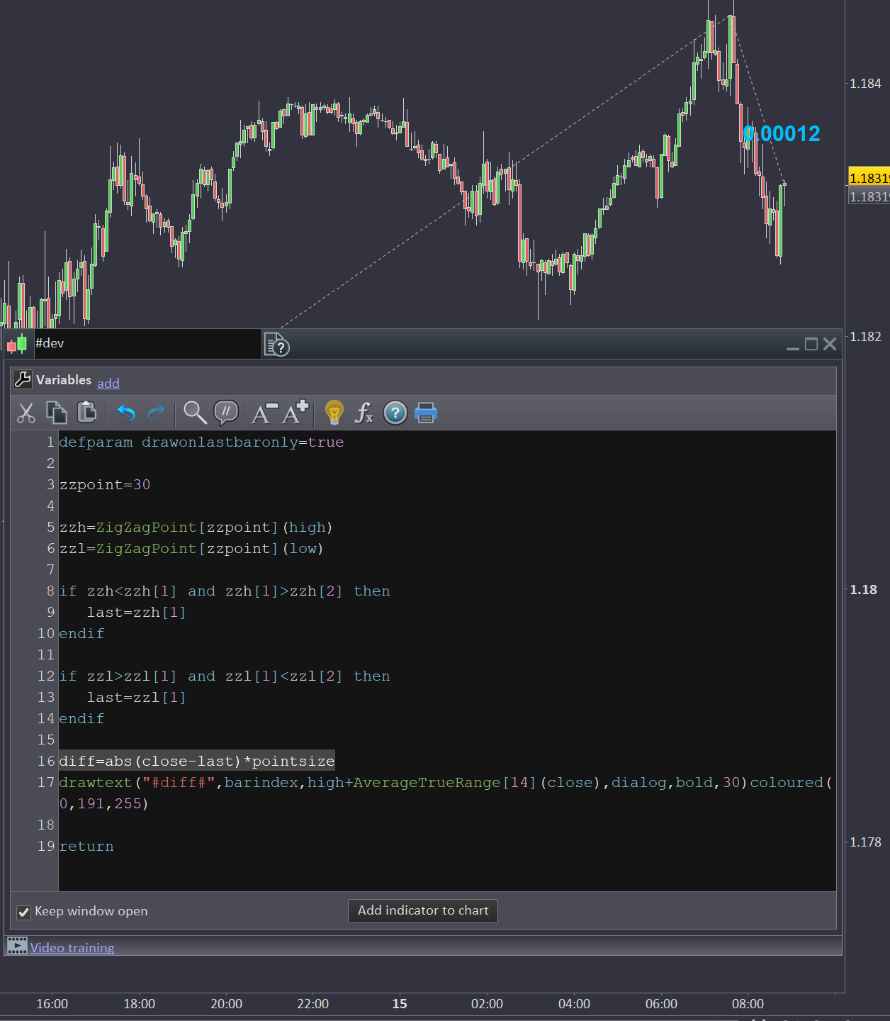 drawtext("#diff#",barindex,high+AverageTrueRange[14](close),dialog,bold,30)coloured(0,191,255)